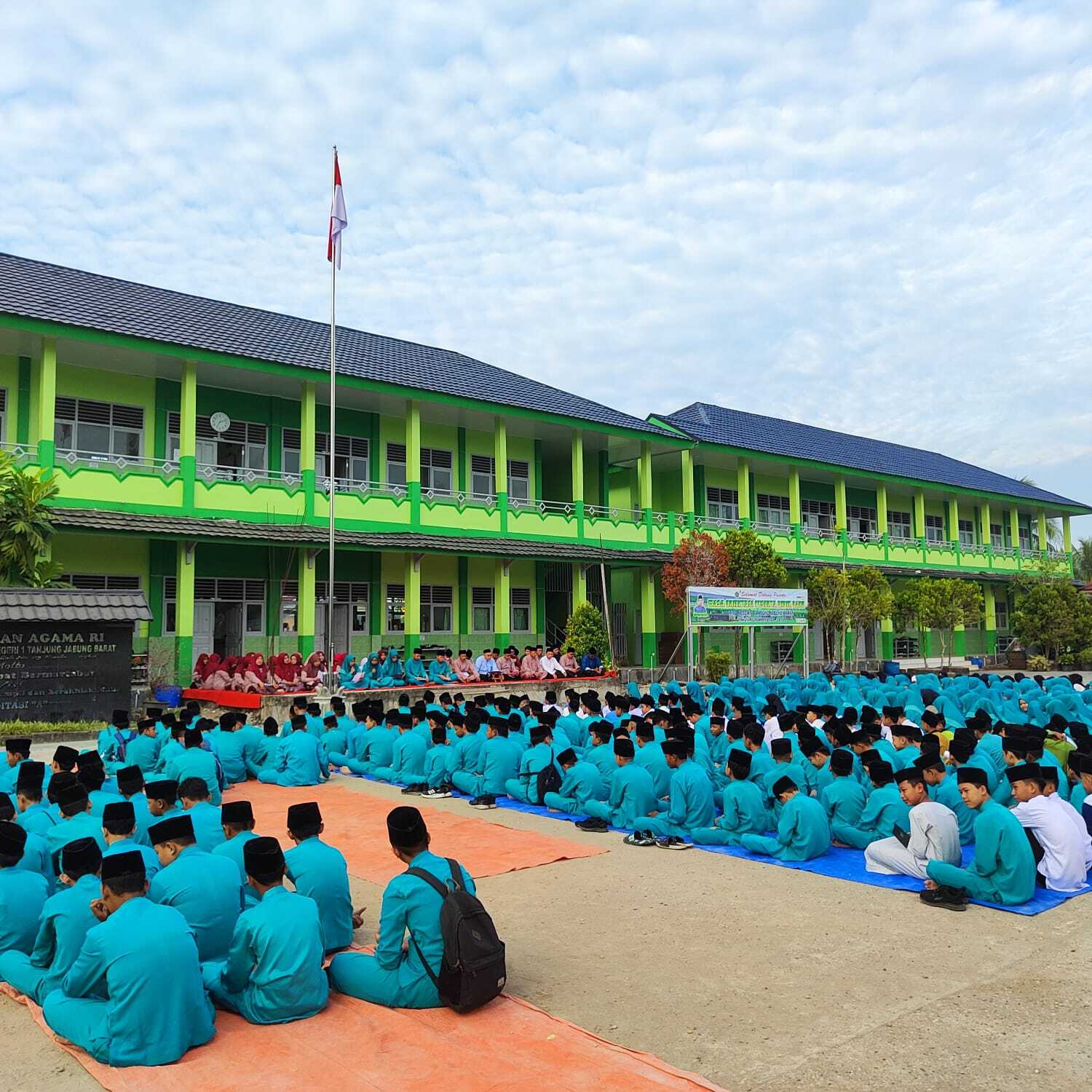 Kegiatan ini dimulai tepat pukul 07.00 pagi dihalaman madrasah dan diikuti oleh kepala madrasah dan tenaga kependidikan serra seluruh siswa dan siswi MTs Negeri 1 Tanjung Jabung Barat.