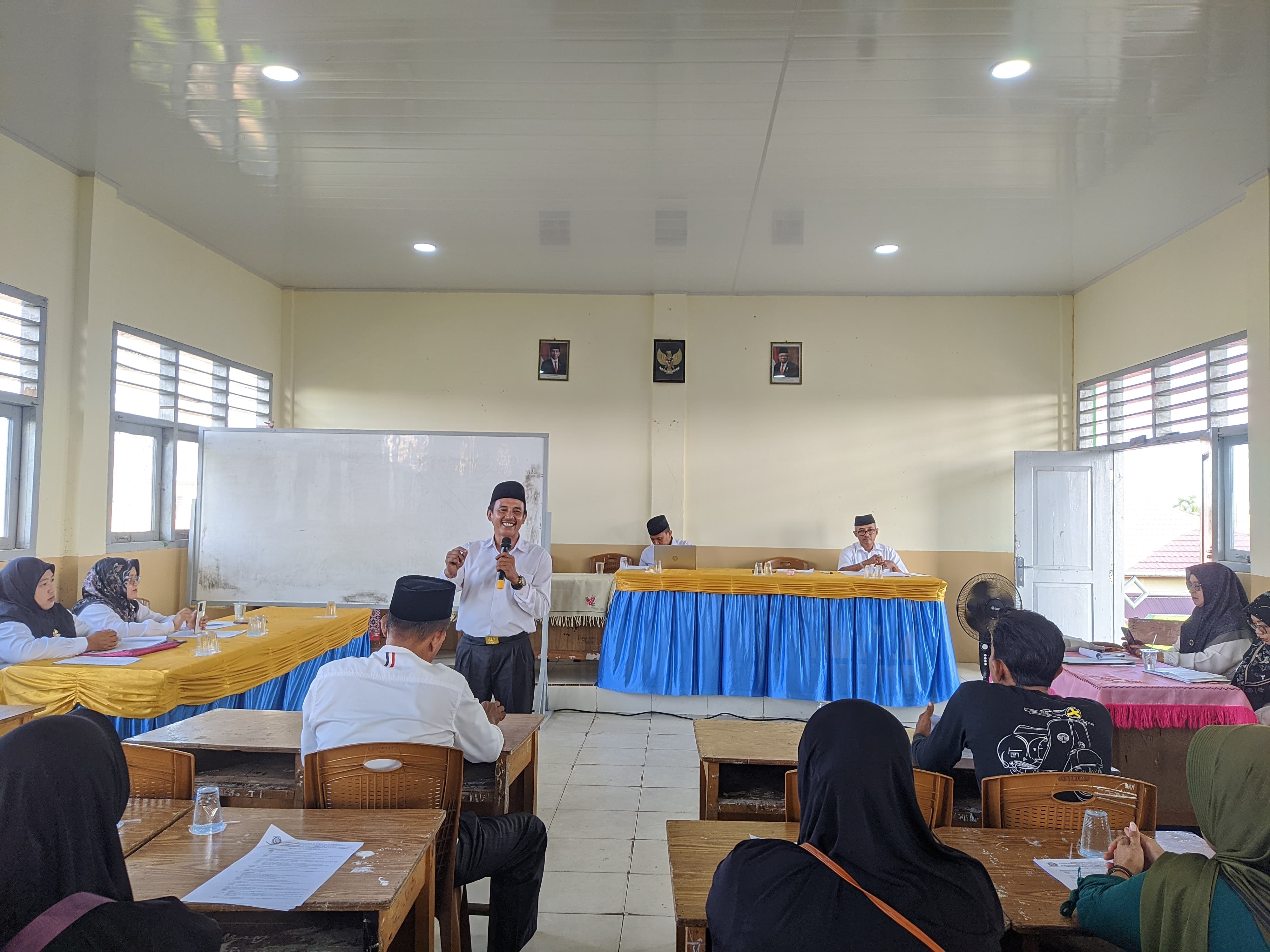 Bertempat di ruang aula kelas madrasah, dilaksanakan rapat awal tahun pelajaran antara pihak madrasah bersama orang tua dan wali siswa kelas VII MTs Negeri 1 Tanjung Jabung Barat.