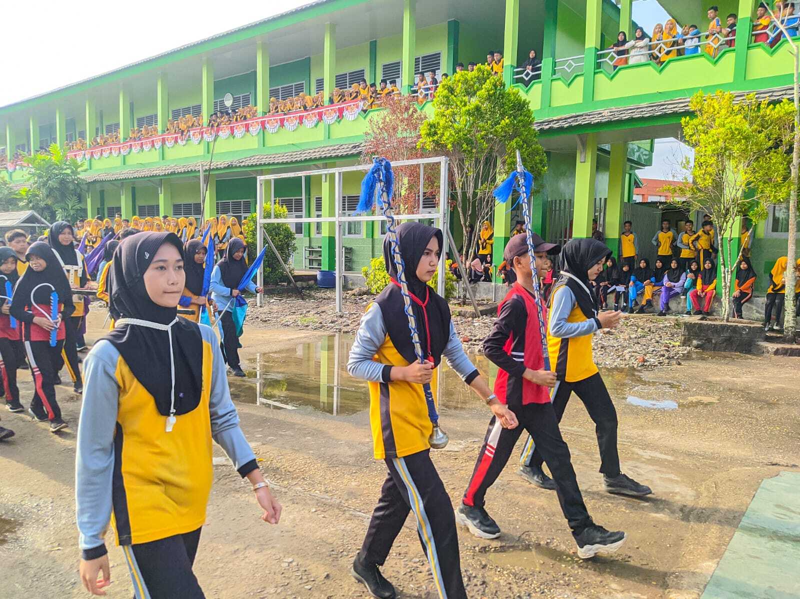 Menjelang puncak perayaan Hari Ulang Tahun Repubilk Indonesia ke 79 tahun 2024, tim drumband MTsN 1 Tanjung Jabung Barat yang bernama Group Gita Pesona Mandala intensifkan latihan.