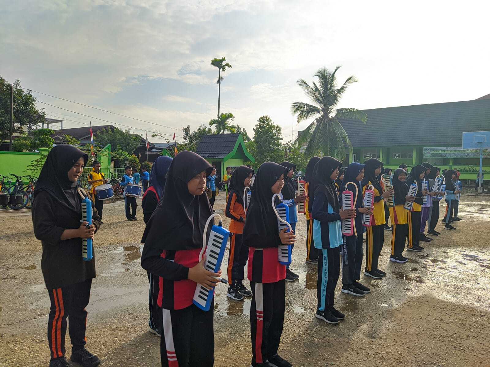 Pembina drumband MTsN 1 Tanjung Jabung Barat M. Faisal Saputra, S.Pd disela-sela latihan menyampaikan ucapan terimakasih kepada kepala madrasah karena telah mendukung kegiatan drumband dan telah memfasilitiasi sarana dan alat pendukung dalam latihan drumband di madrasah