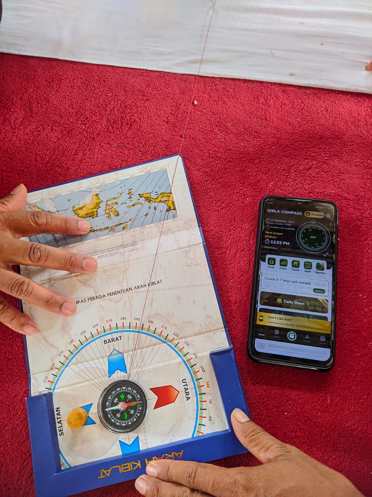 Selanjutnya pada hari selasa tanggal 10 September 2024 perwakilan dari seksi Bimas Islam bidang kemasjidan kantor kemeterian Agama kabupaten Tanjung Jabung Barat, Muhsin S.Ag dan Fahrunsyah, SPd.I meninjau kegiatan pembangunan masjid ini sekaligus melakukan kalibrasi pengukuran arah kiblat. Adapun metode dan alat yang digunakan ada 2 yaitu secara manual yang berupa buku atau kitab yang terdapat kompas dan arah mata angin serta secara digital melalui smartphone yang terkoneksi melalui aplikasi yang sudah ilmiah dan teruji.