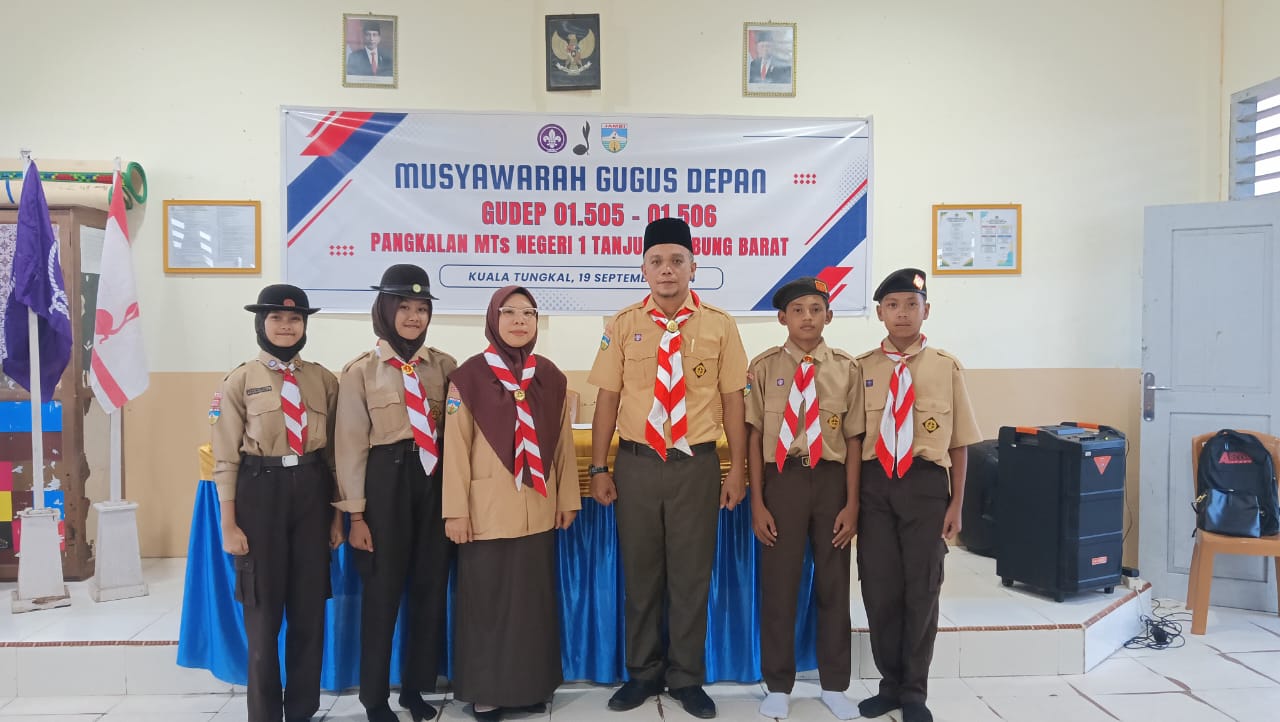 Berdasarkan anggaran dasar dan anggaran rumah tangga gerakan pramuka tersebut, gugus depan 01.505-01.506 pangkalan MTsN 1 Tanjung Jabung Barat melaksanakan musyawarah gugus depan. Kegiatan yang bertempat di aula kelas ini dimulai pada pukul 15.00 wib. Didampingi pembina satuan putra Kak Muhammad Saleh, S.Pd.I dan pembina satuan putri Kak Ema Ratna Yuli, S.Pd serta Ketua Gugus Depan Kak Muhammad Rafki, S.Sos. Kegiatan Mugus berjalan lancar dan berhasil memilih ketua dewan penggalang putra dan putri yang baru serta menyusun program kerja gugus depan yang baru untuk kedepannya.