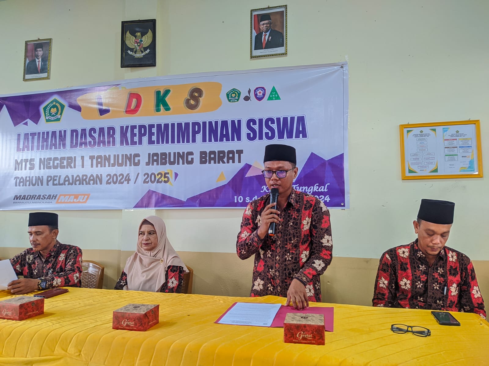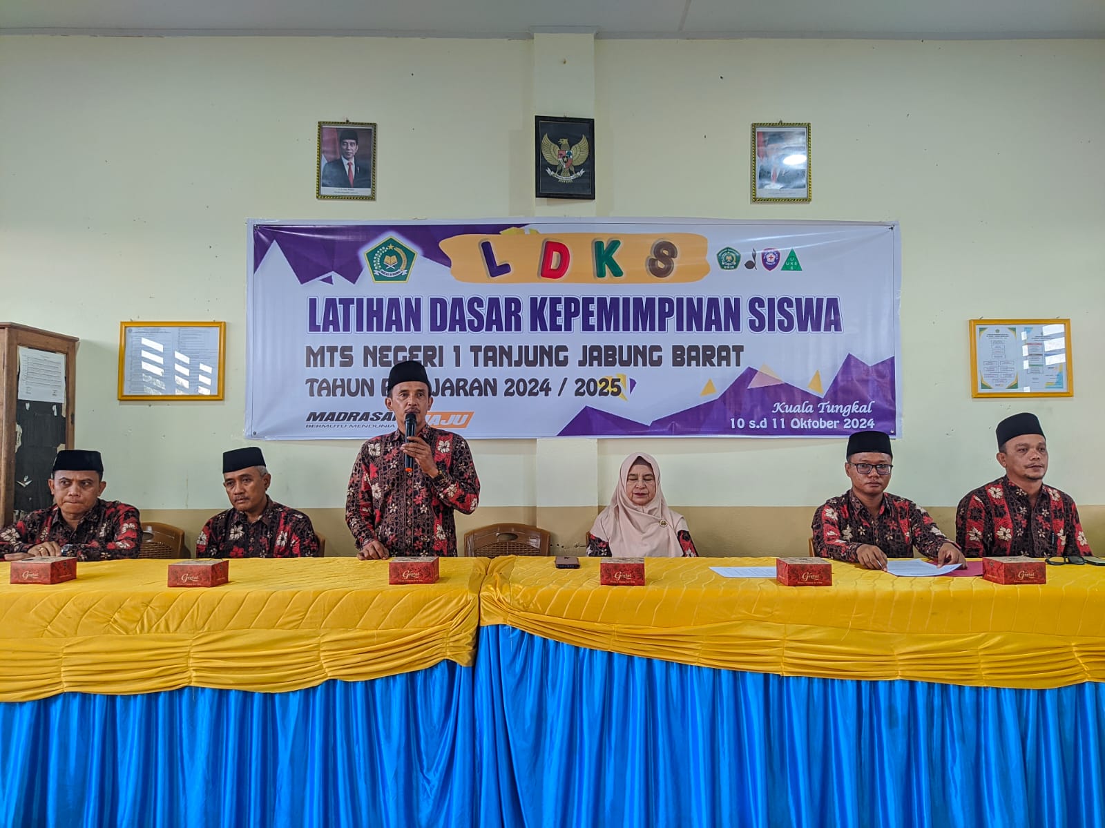 Kepala MTs Negeri 1 Tanjung Jabung Barat, bapak Mhd Tang, S.Ag, M.Pd.I membuka secara resmi pelaksanaan kegiatan Latihan Dasar Kepemimpinan Siswa (LDKS) tahun 2024. Kegiatan ini direncanakan akan berlangsung selama 2 hari dimulai tanggal 10 s.d 11 oktober 2024 di ruang aula kelas.