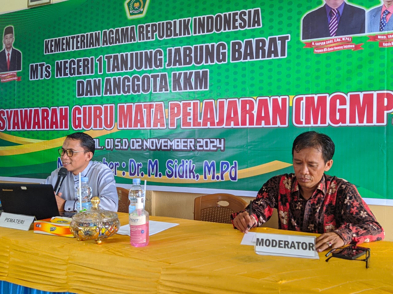 Landasan pelaksanaan musyawarah guru mata pelajaran tertuang dalam undang-undang nomor 14 tahun 2005 tentang guru dan dosen pasal 20 ayat (b) mengamanatkan bahwa dalam rangka melaksanakan tugas keprofesionalannya, guru berkewajiban meningkatkan dan mengembangkan kualifikasi akademik dan kompetensi secara berkelanjutan. Mengingat akan pentingnya subtansi dari MGMP tersebut maka MTs Negeri 1 Tanjung Jabung Barat menyelenggarakan kegiatan MGMP selama 2 hari, kegiatan ini dimulai pada tanggal 1-2 november 2024 yang bertempat di aula MTs Negeri 1 Tanjung Jabung Barat.