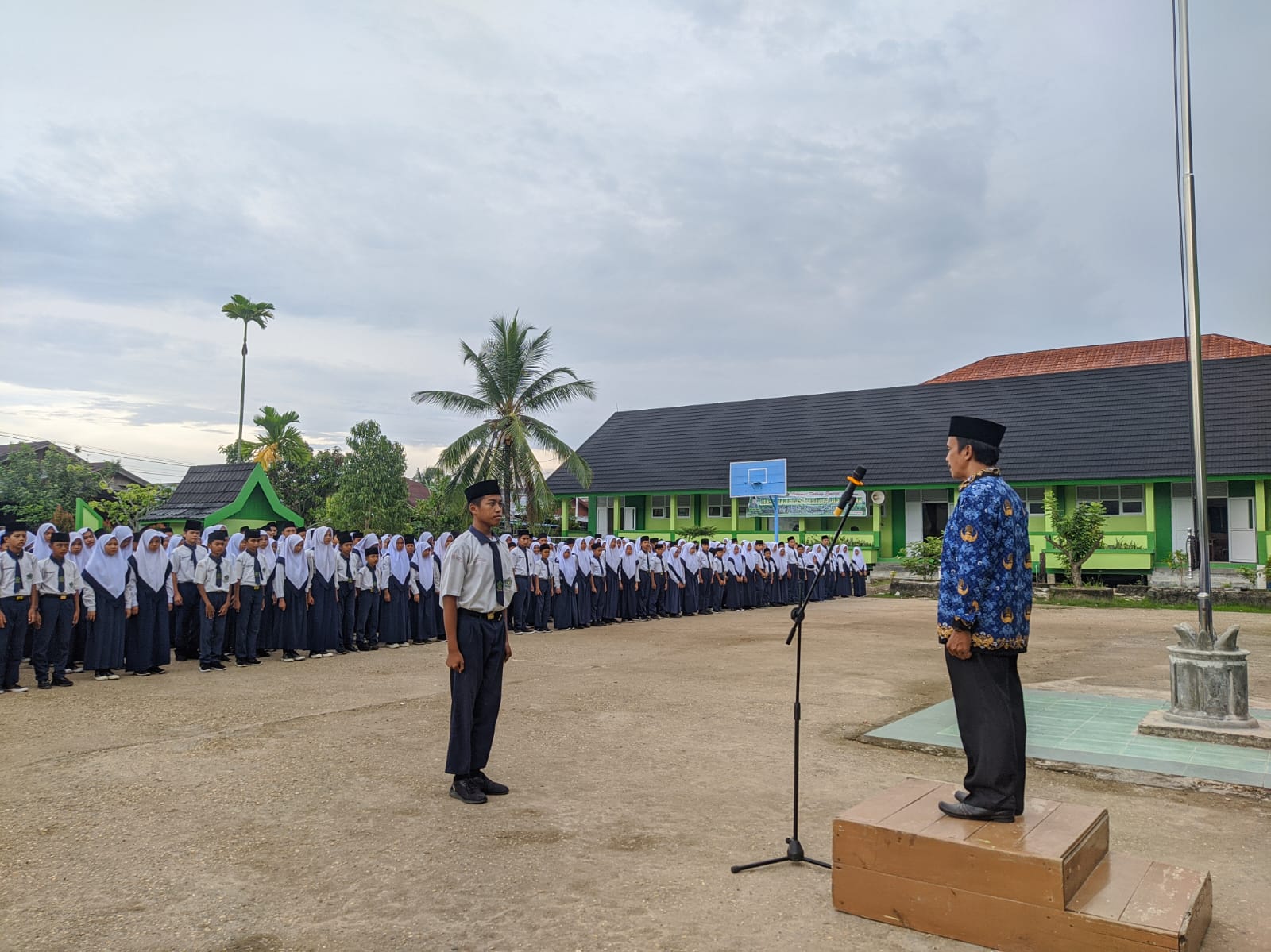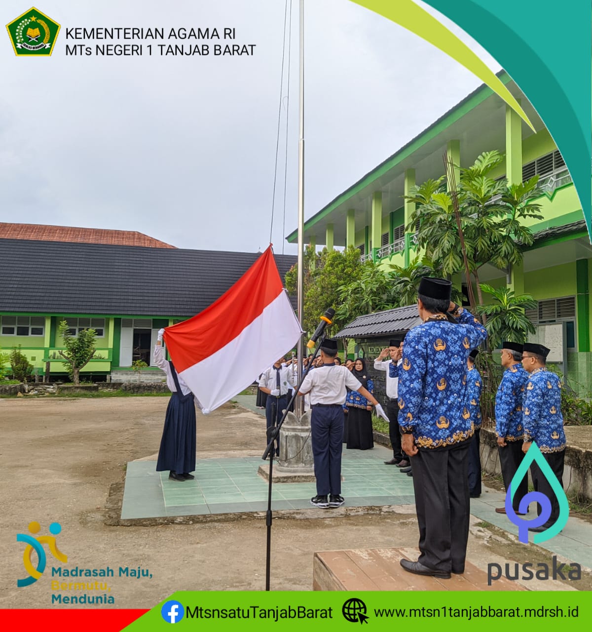 Upacara berlangsung tertib dan khidmad, diikuti oleh guru dan tenaga kependidikan serta seluruh siswa dan siswi MTs Negeri 1 Tanjung Jabung Barat, dan tepat pukul 07.00 upacara telah dimulai