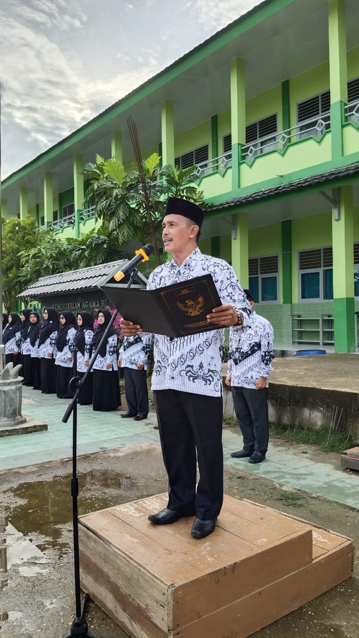 Selanjutnya kepala madrasah yang bertindak sebagai pembina upacara menyampaikan sambutan menteri pendidikan dasar dan menengah Prof.Dr.Abdul Mu'ti, M.Ed pada saat amanat upacara. Dimana tema hari guru nasional tahun ini adalah Guru Hebat Indonesia Kuat. Dimana guru yang hebat menentukan kualitas pembelajaran, kualitas kelulusan, dan kualitas sumber daya manusia.