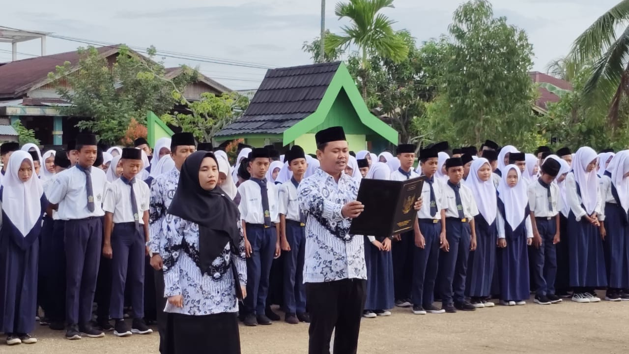 Peringatan hari guru nasional dirayakan serentak di seluruh penjuru tanah air, tak terkecuali oleh MTs Negeri 1 Tanjung Jabung Barat. Tanggal 25 november 2024 yang bertepatan hari senin ini dilaksanakan upacara bendera dalam rangka memperingati hari guru nasional dan hut pgri ke 79. Ada hal menarik pada upacara kali ini, dimana seluruh petugas upacara dilaksanakan oleh majelis guru MTs Negeri 1 Tanjung Jabung Barat.