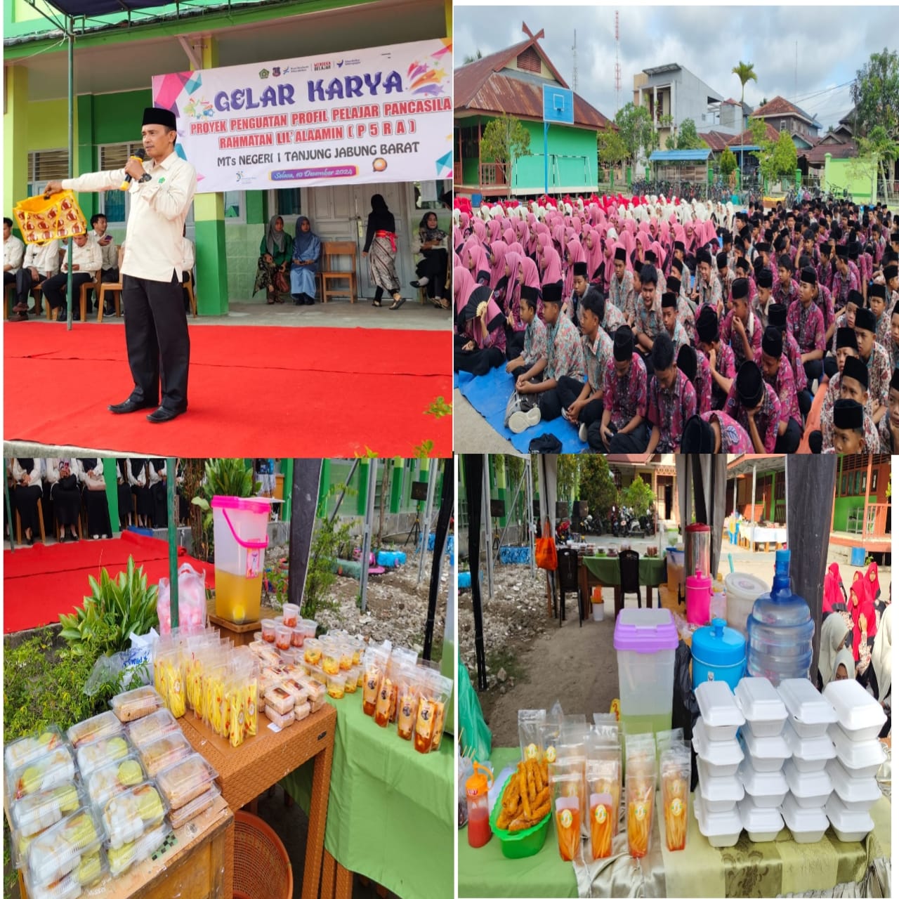Kepala MTsN 1 Tanjung Jabung Barat, bapak Mhd, Tang, S.Ag, M.Pd.I membuka secara langsung pelaksanaan kegiatan puncak Gelar Karya P5RA yang bertempat di lapangan utama madrasah. Kegiatan yang berlangsung pada hari selasa ini merupakan puncak pelaksanaan P5RA yang sebelaumnya telah dimulai tahapan proses persiapan pada tanggal 4 s.d 9 desember 2024.