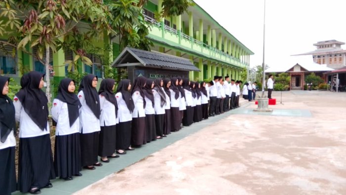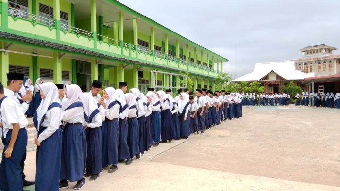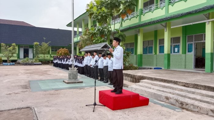 Mentari pagi di Kuala Tungkal menyambut kehadiran ratusan siswa, guru, dan karyawan MTsN 1 Tanjung Jabung Barat yang kembali memadati halaman madrasah pada Senin pagi. Setelah menikmati libur panjang Idul Fitri 1447 H, seluruh civitas akademika berkumpul dalam barisan yang rapi untuk mengikuti apel perdana. Suasana penuh keakraban sangat terasa, di mana raut wajah ceria dan semangat baru terpancar dari para siswa yang saling bertukar cerita singkat mengenai momen lebaran mereka sebelum protokoler apel dimulai.