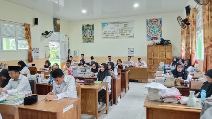 Suasana hangat penuh kekeluargaan menyelimuti ruang guru MTsN 1 Tanjung Jabung Barat saat seluruh majelis guru dan karyawan berkumpul untuk pertama kalinya setelah libur Idulfitri. Rapat perdana ini diawali dengan momen bersalam-salaman dan saling memaafkan, sebuah tradisi yang bukan sekadar formalitas, melainkan perekat semangat kolektif. Senyum sumringah terpancar dari wajah para pendidik, menandakan kesiapan mental untuk kembali mengabdi setelah menjalani jeda spiritual dan waktu berkualitas bersama keluarga di kampung halaman.