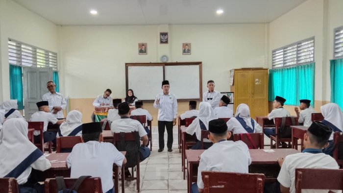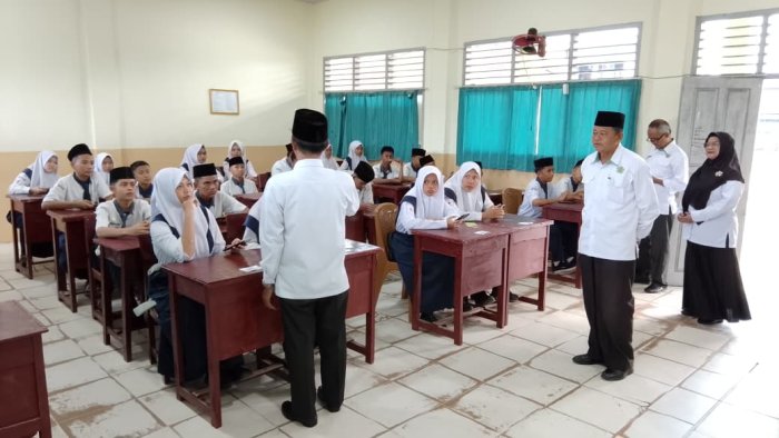 Kepala MTsN 1 Tanjab Barat meninjau langsung jalannya ujian pada hari pertama untuk memastikan tidak ada kendala teknis yang menghambat. Beliau memberikan apresiasi kepada tim panitia yang telah bekerja keras mempersiapkan segala kebutuhan administrasi dan logistik. Kehadiran pimpinan di tengah-tengah ruang ujian juga memberikan dorongan moril tambahan bagi para siswa agar lebih percaya diri dalam mengerjakan soal-soal yang diujikan, mulai dari mata pelajaran umum hingga mata pelajaran agama. Kepala Madrasah juga memberikan pesan mendalam bagi seluruh siswa kelas IX. Beliau menegaskan bahwa ujian ini bukan sekadar ajang adu kecerdasan di atas kertas, melainkan ujian integritas dan kejujuran bagi seorang santri. "Anak-anakku, kerjakanlah soal dengan tenang dan teliti. Ingatlah bahwa nilai yang tinggi memang penting, namun kejujuran adalah yang utama. Jadikan ujian ini sebagai pembuktian bahwa kalian adalah generasi yang tidak hanya cerdas akalnya, tapi juga mulia akhlaknya," pesan beliau memberikan motivasi.
