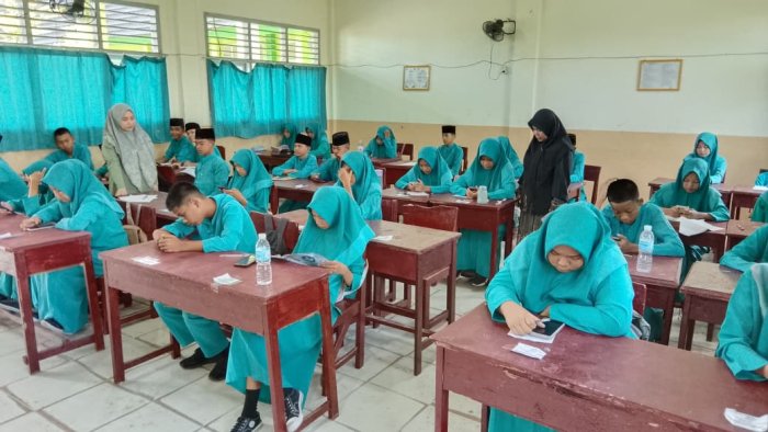 Gema rasa syukur menyelimuti lingkungan MTsN 1 Tanjung Jabung Barat seiring dengan berakhirnya pelaksanaan Ujian Madrasah (UM) bagi siswa kelas IX pada hari ini. Setelah berjuang selama sepekan mengerjakan berbagai mata pelajaran, para siswa akhirnya menyelesaikan soal terakhir dengan tertib dan lancar. Momentum hari terakhir ini ditandai dengan suasana haru dan lega, baik dari kalangan siswa maupun para guru yang telah mendampingi proses belajar mereka selama tiga tahun terakhir.