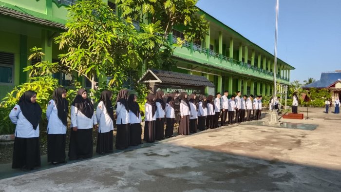Mengawali pekan dengan semangat nasionalisme, MTsN 1 Tanjung Jabung Barat kembali menggelar upacara bendera rutin pada Senin pagi, 27 April 2026. Upacara yang berlangsung di lapangan utama madrasah ini diikuti oleh seluruh siswa, majelis guru, serta staf tata usaha dengan penuh khidmat. Cuaca cerah pagi ini seolah mendukung kelancaran prosesi upacara yang menjadi agenda wajib untuk menanamkan nilai-nilai kedisiplinan dan cinta tanah air kepada seluruh civitas akademika.
